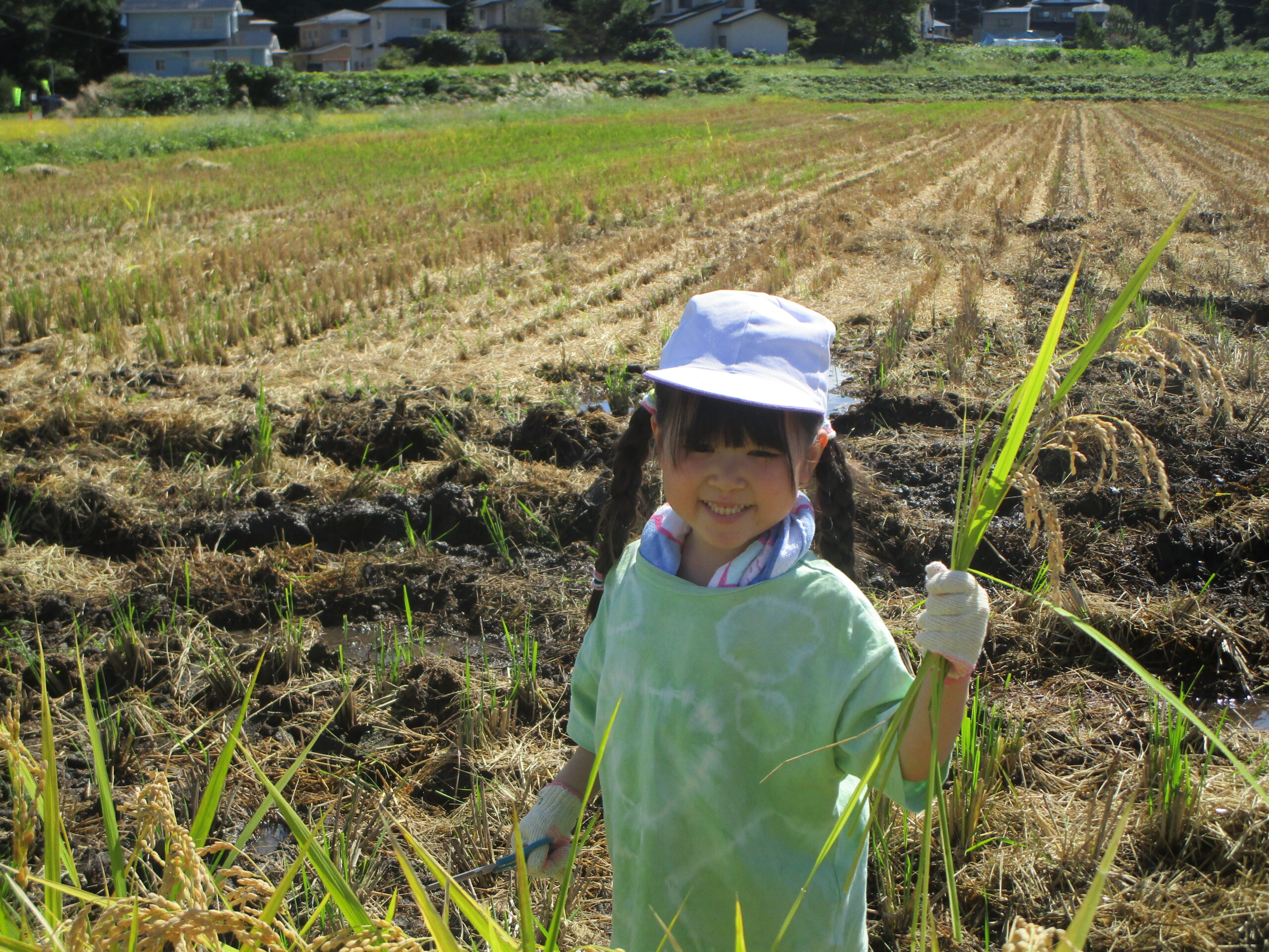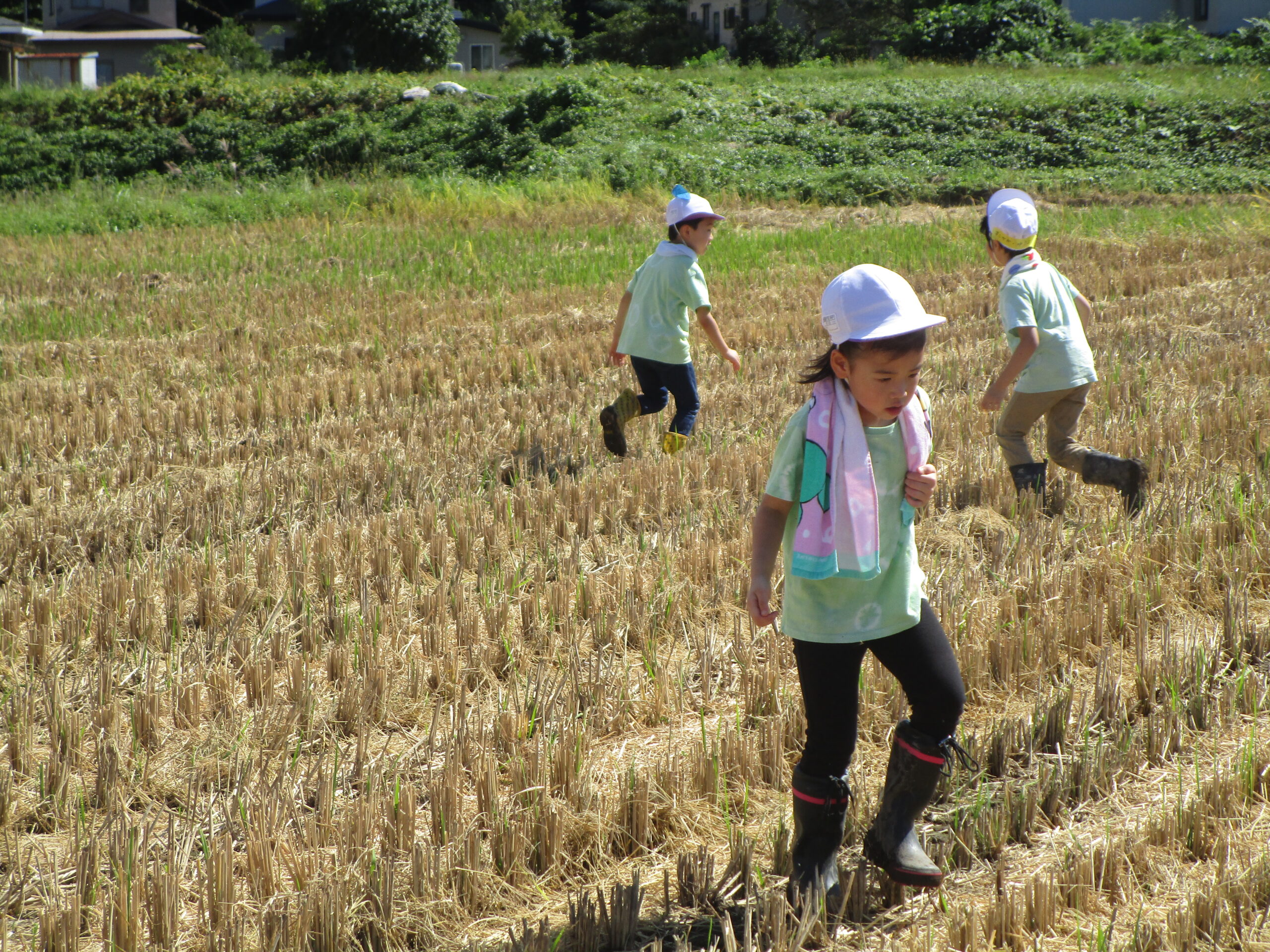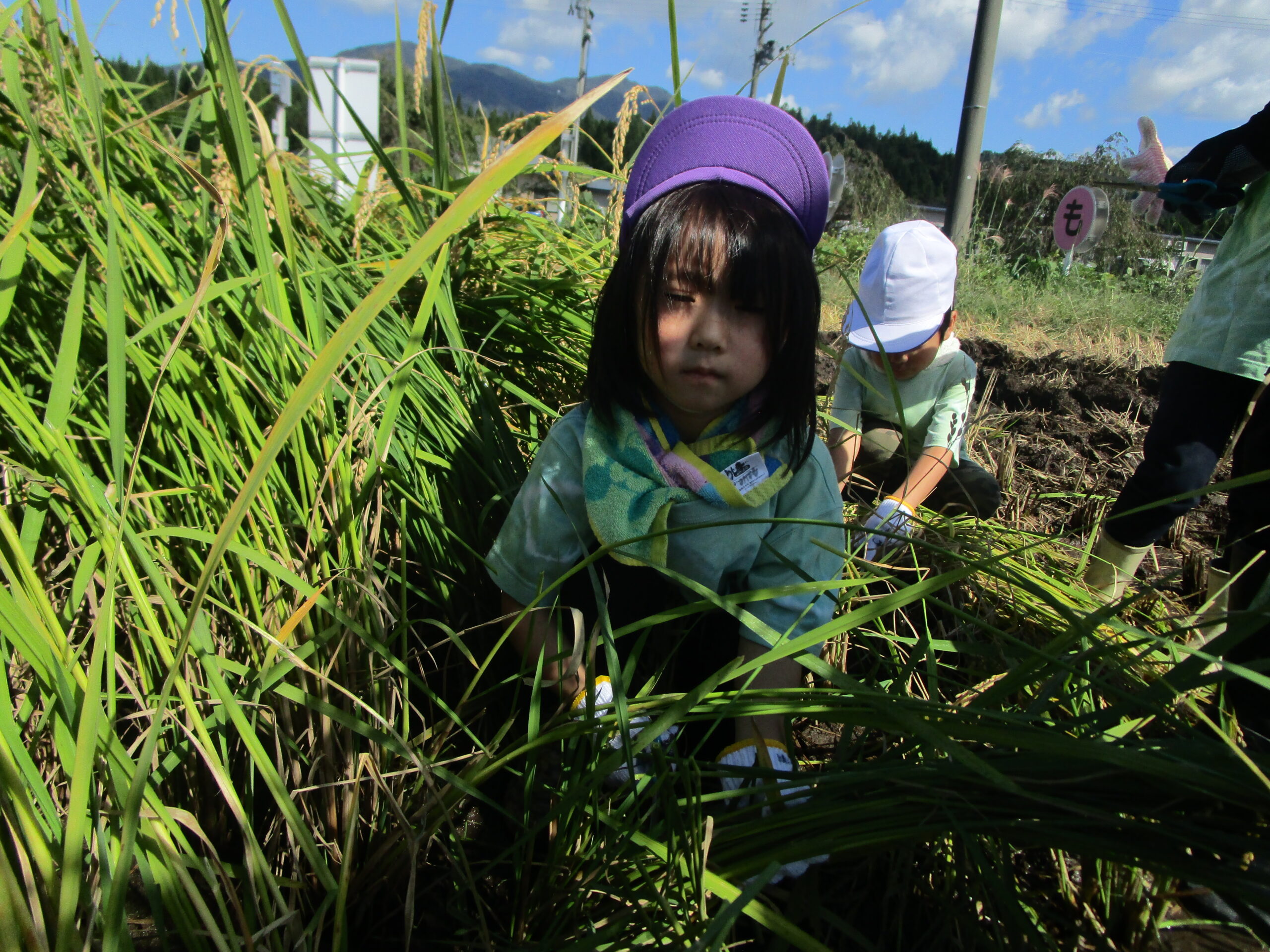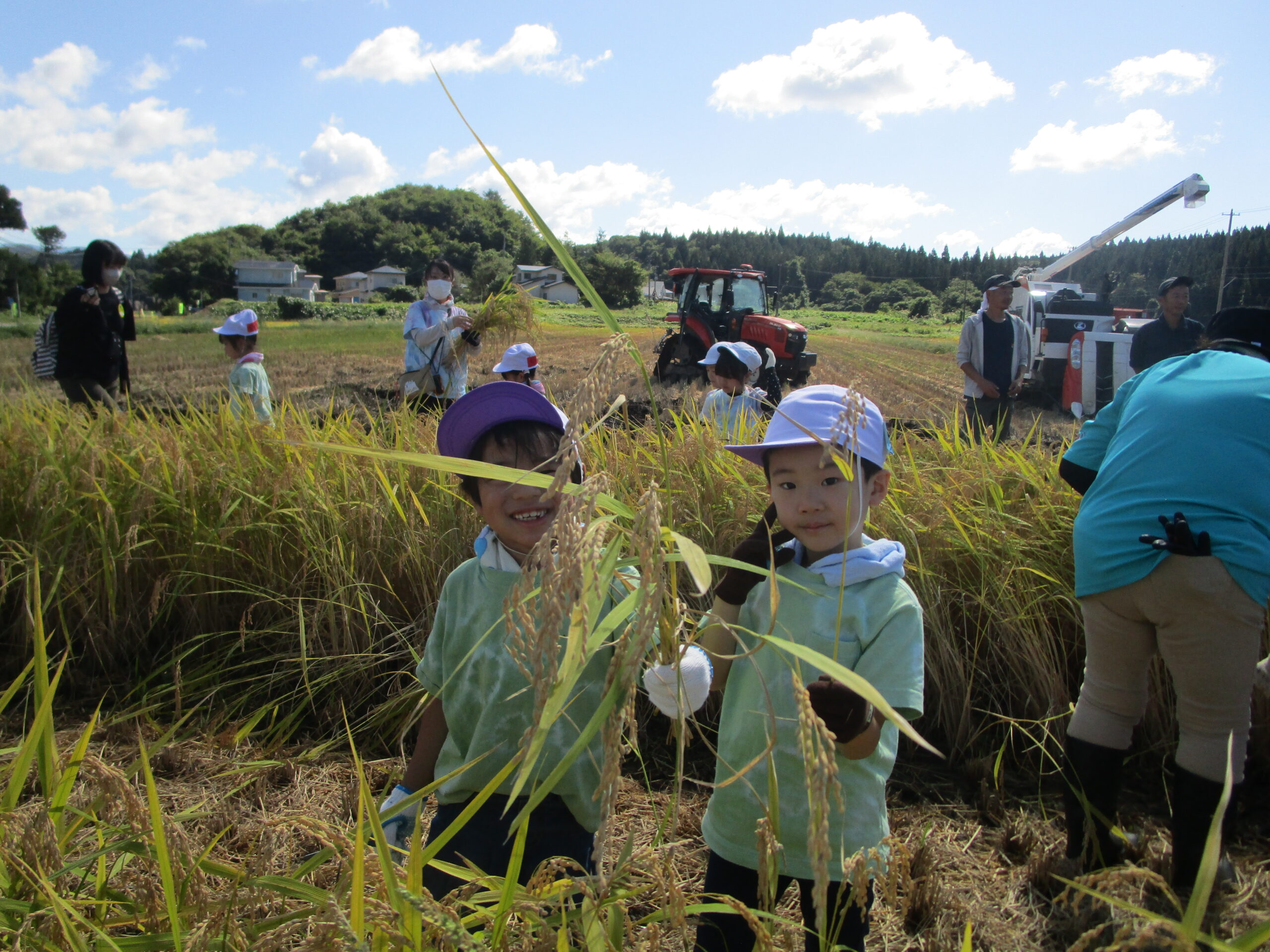 稲穂の根元からハサミでちょきん!こんなに大きくなっていたんだね~!とびっくりの子ども達でした。コンバインに乗った後は、赤とんぼを追いかけて、鬼ごっこをして・・・心地よい秋の日を満喫してきましたよ♪