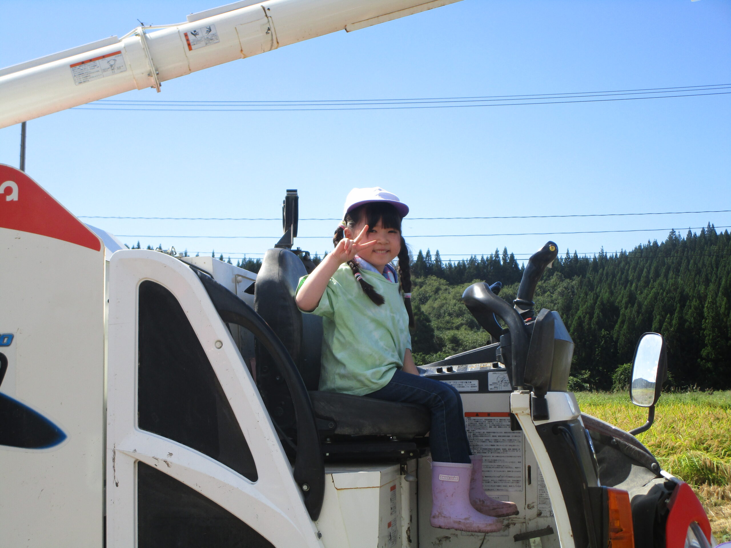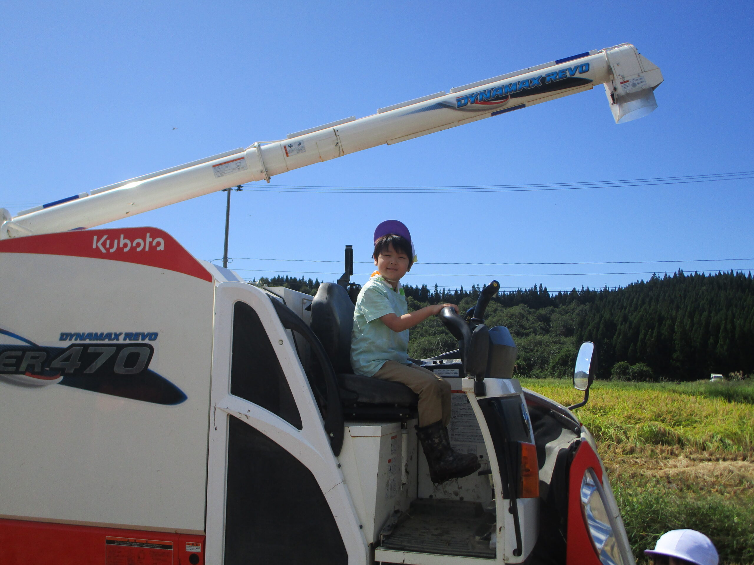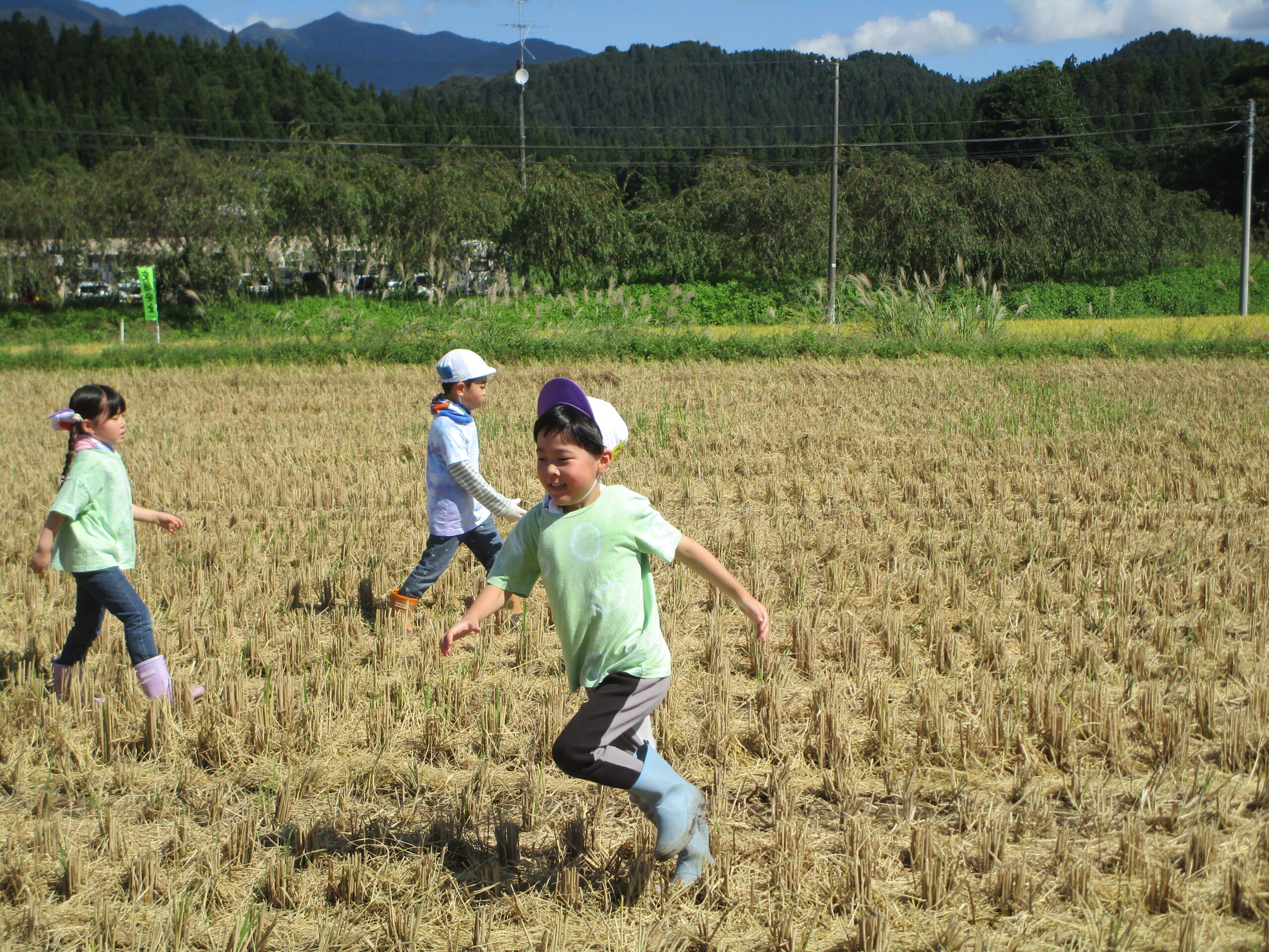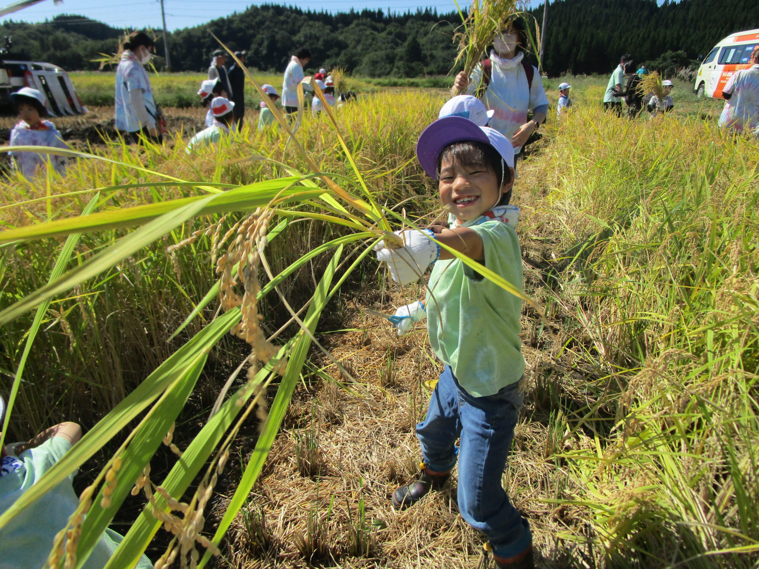 稲穂の根元からハサミでちょきん!こんなに大きくなっていたんだね~!とびっくりの子ども達でした。コンバインに乗った後は、赤とんぼを追いかけて、鬼ごっこをして・・・心地よい秋の日を満喫してきましたよ♪