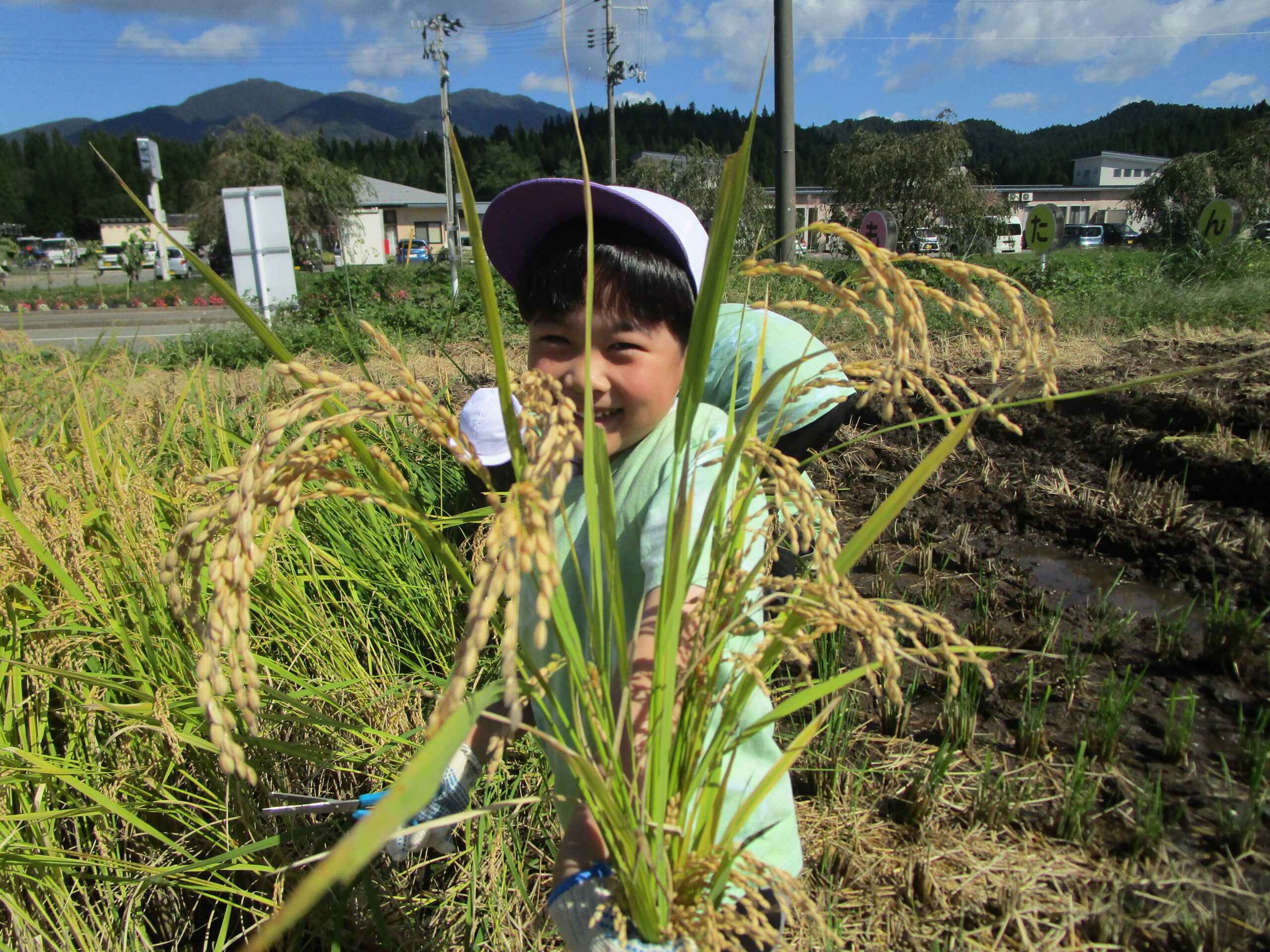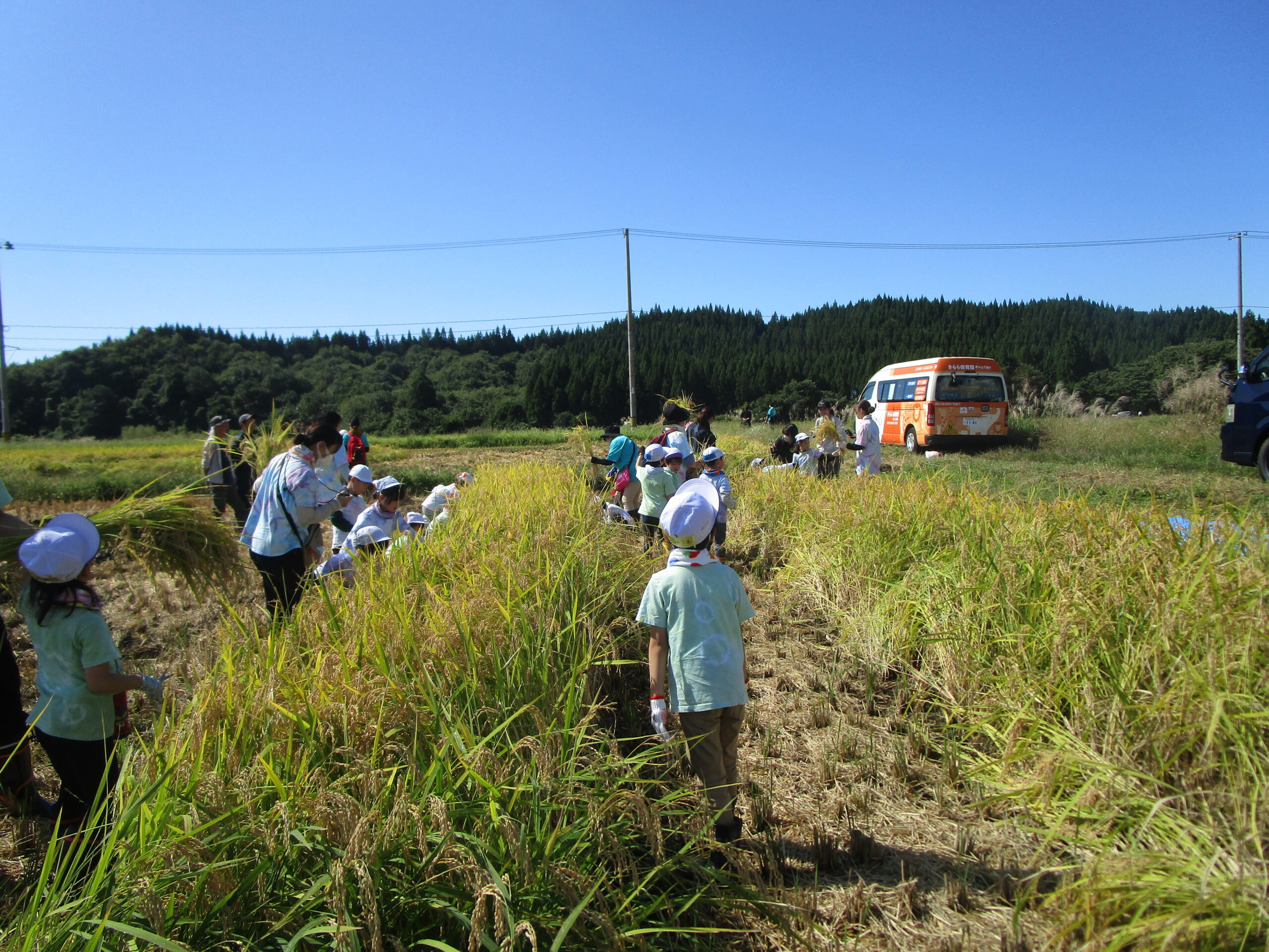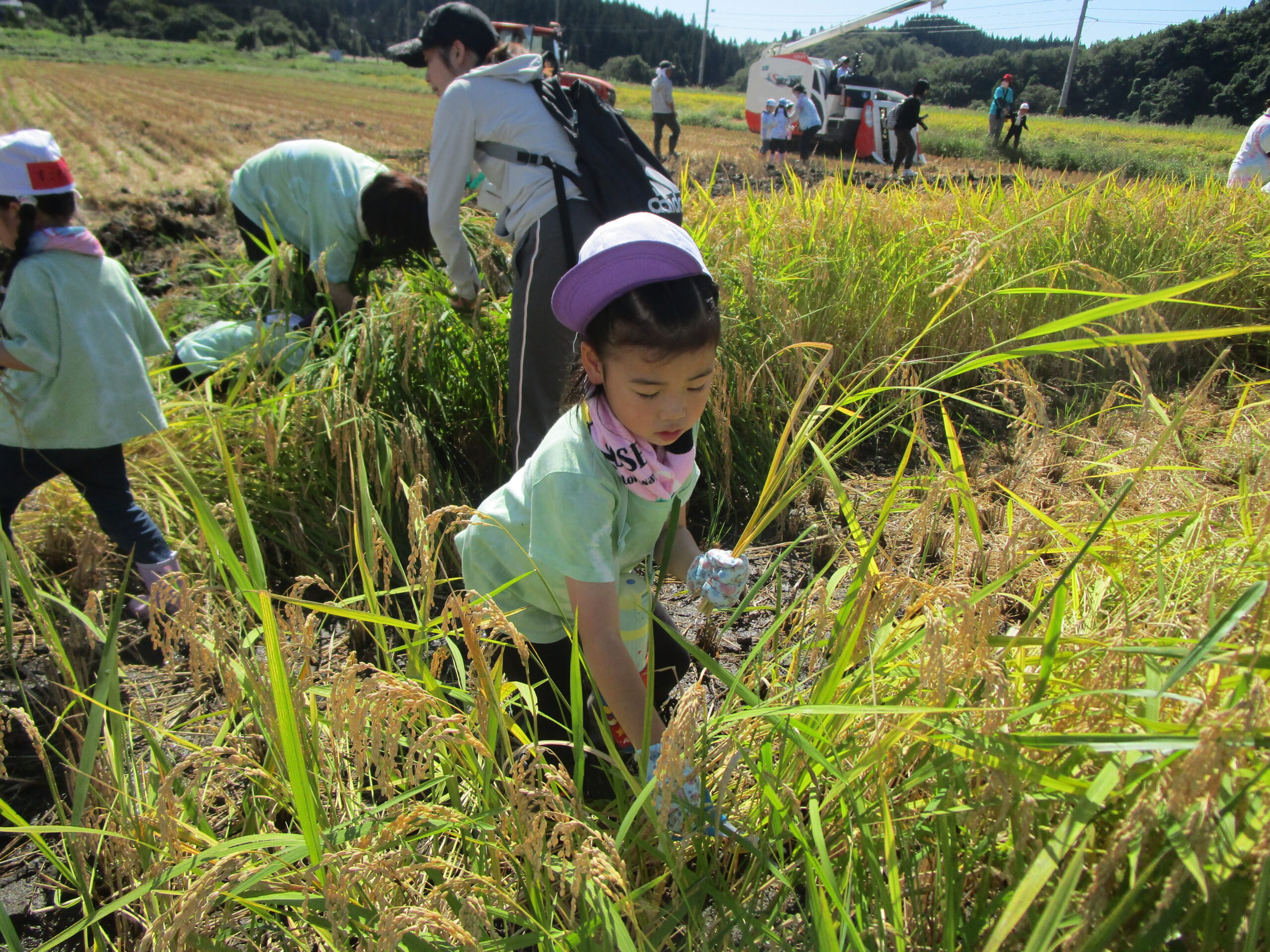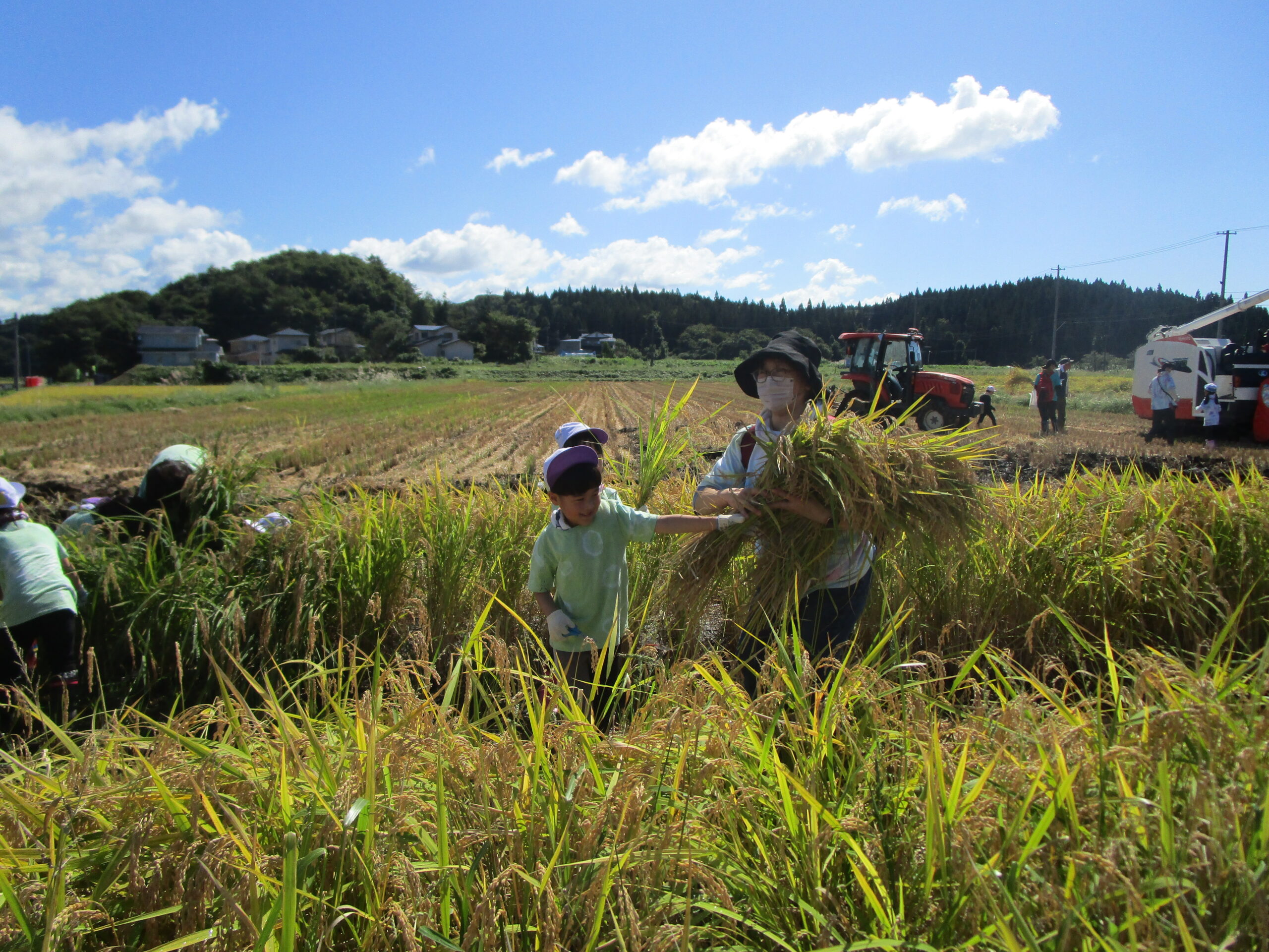 稲穂の根元からハサミでちょきん!こんなに大きくなっていたんだね~!とびっくりの子ども達でした。コンバインに乗った後は、赤とんぼを追いかけて、鬼ごっこをして・・・心地よい秋の日を満喫してきましたよ♪