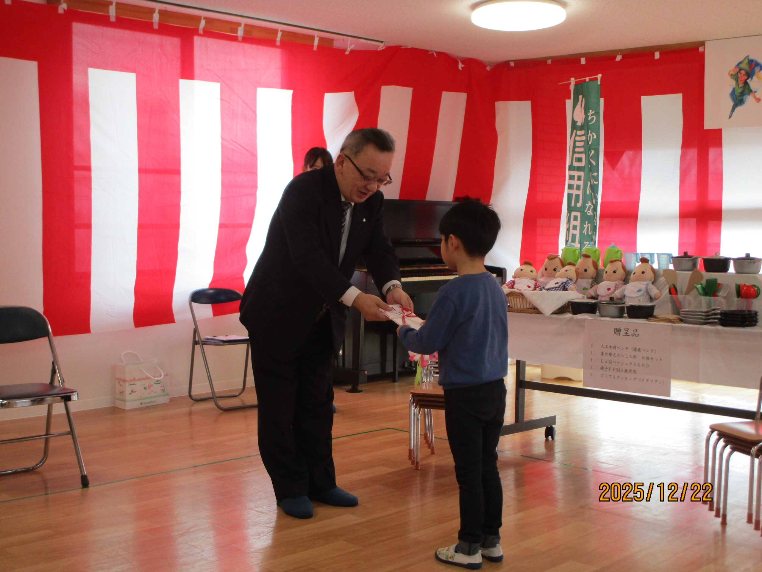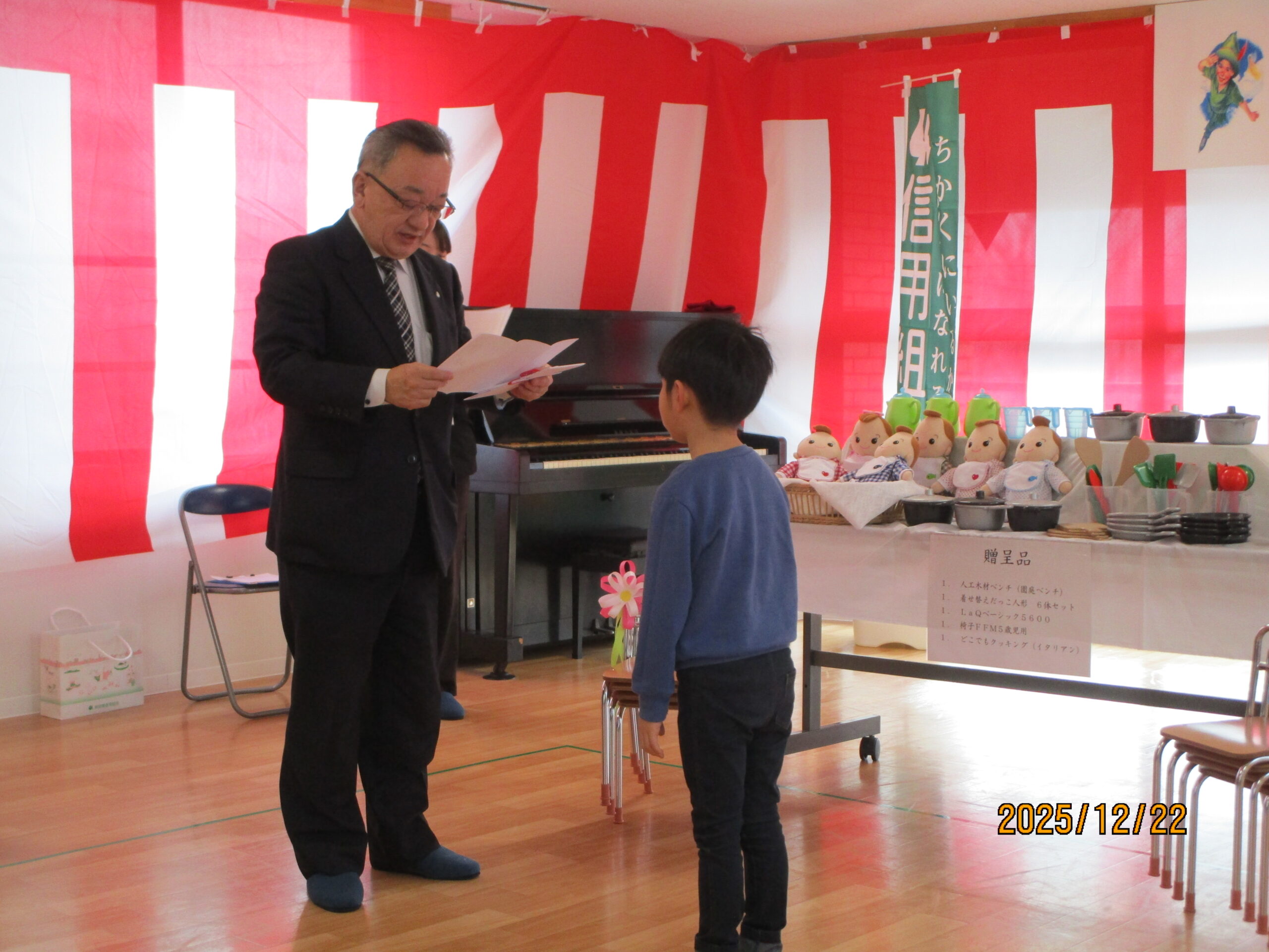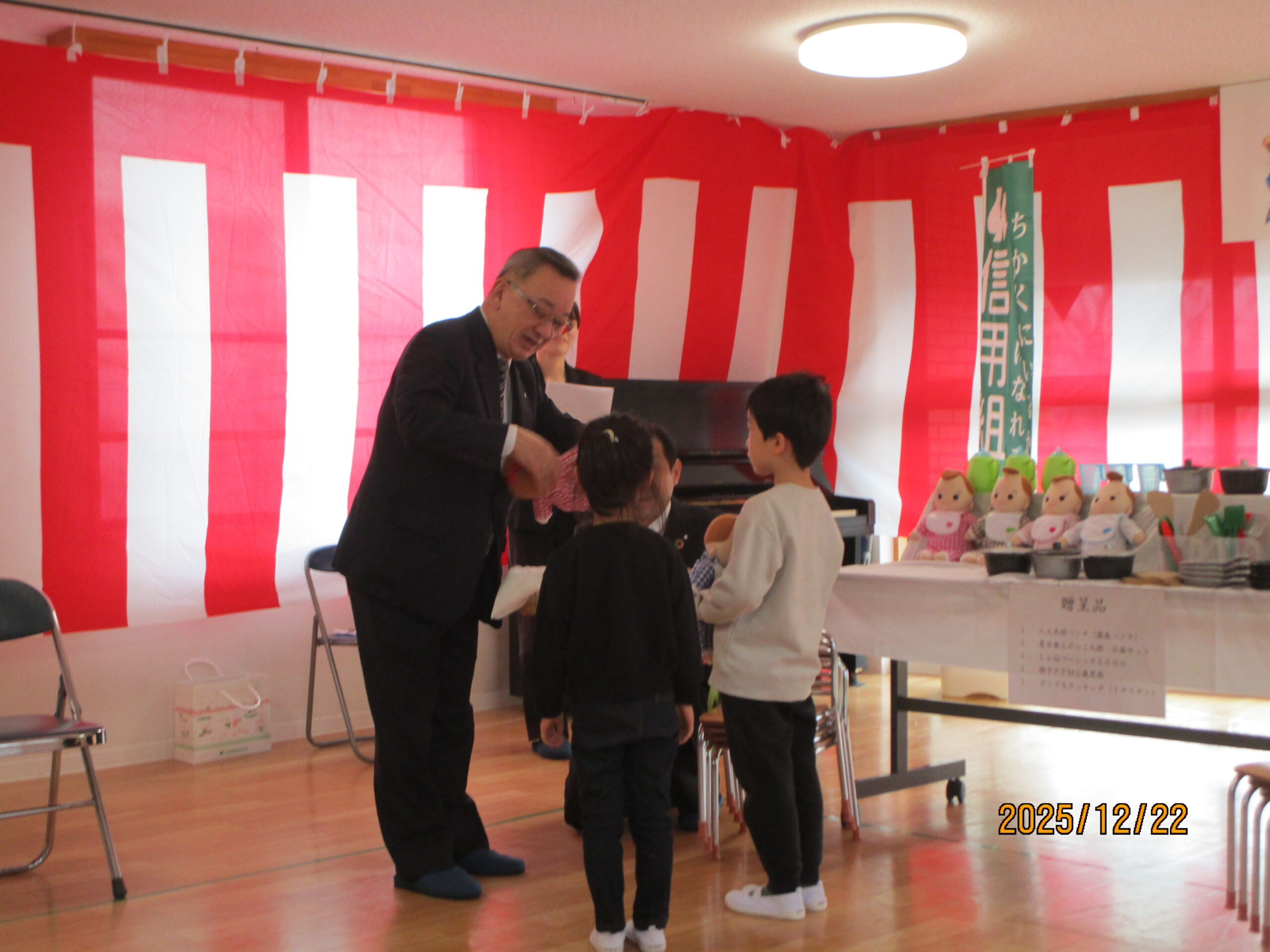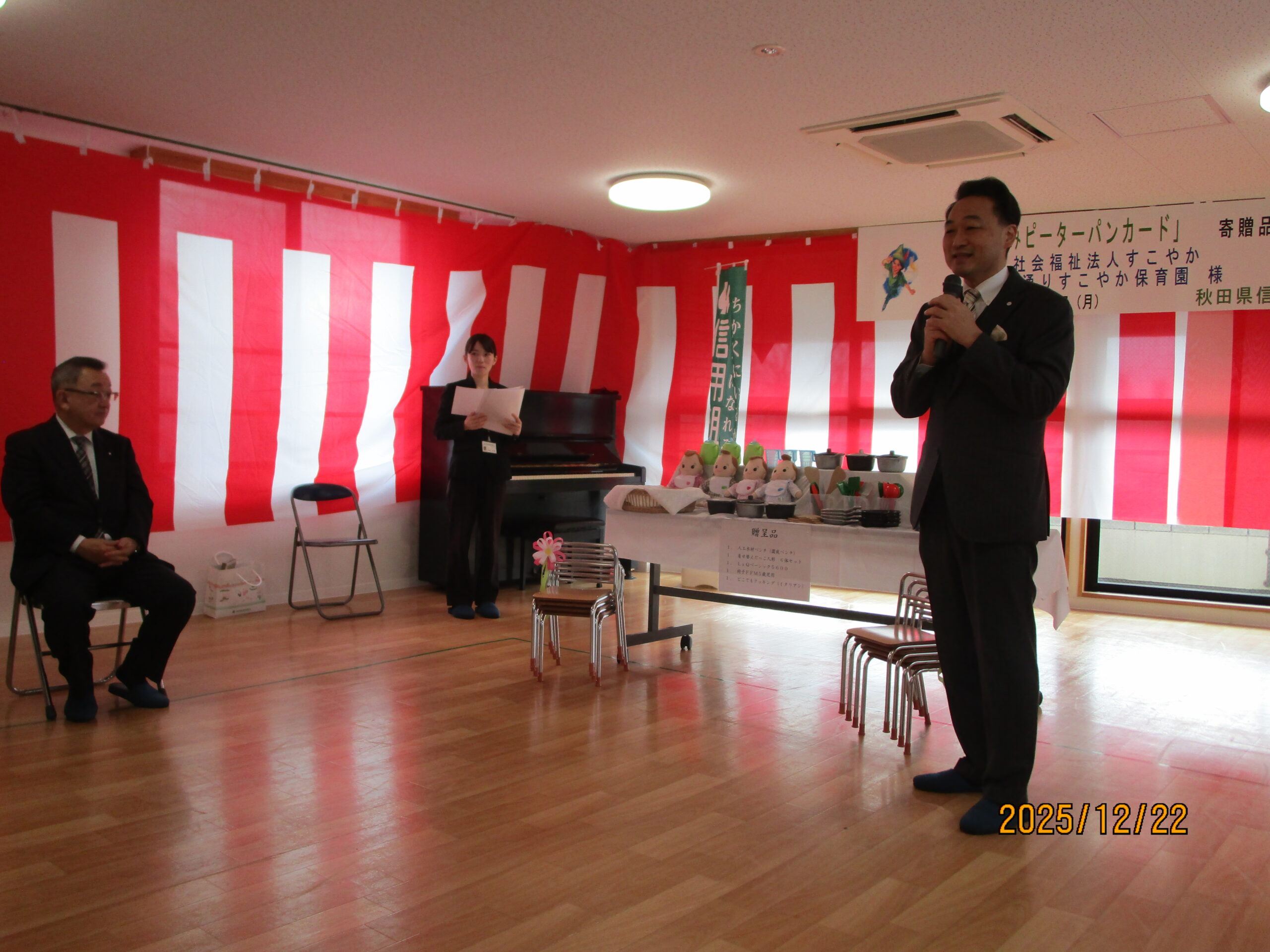 秋田県信用組合さんから、子ども達のためにお人形・おままごとセット・ラキューなどたくさんの玩具や、園児用椅子、園庭用のベンチを寄贈していただきました!保育園を代表して年長さんが式に参加し、感謝の気持ちを伝えましたよ。いただいた物はみんなで仲良く、大切に使いたいと思います。ありがとうございました!!