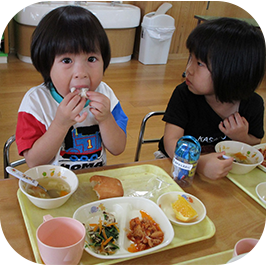 3歳以上の子どもたちは異年齢児合同保育となっており、集団生活の中で子どもたち同士で助け合い、協力し、共に成長していく姿を温かく見守りながら子どもたちに寄り添う保育を行っております。